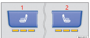 提示:座椅加热器应根据实际需要使用。不需要时,应关闭座椅加热器,以避免浪费燃油。如果在加热过程中出现异味,必须立即关闭座椅加热器,并且必须尽快在公司的授权经销商处修理可加热座椅。