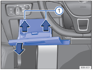 大众新迈腾的保险丝盒如图所示。保险丝比较表位于保险丝盒盖上。
