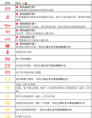 大众帕萨特故障灯大全,帕萨特故障灯标识大全