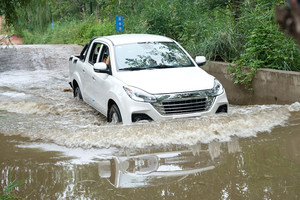 项目一开始,车辆将通过一个有“好汉坡”之称的40度斜坡,在这里,从从坡到坡上行走,再到最后下坡,新宝典的表现只能有稳定来形容,当车辆挂入低速四驱,更大的扭力被释放出来,车辆在冲坡阶段可谓是完全没有压力。在下坡的过程中,车辆一直以稳健的姿态向下行驶,并顺利完成40度坡的项目。再次此之后,车辆来到了第二个难点,30度斜坡+交叉轴,熟悉suv车型的朋友,都知道交叉轴测试是对于车辆,动力分配及脱困能力的最好测试,本来就不容易的交叉轴加上前面30度斜坡,挑战起来就难了。通过出色的动力输出及分配,新宝典同样轻松的通过这一项目。之后的非铺装路面,对于新宝典来说完全没有难度全部轻松度过。特别是在三个连续的驼峰上,新宝典车型,还让笔者感受了一把“海盗船”,对于经常面临涉水环境的工具来说,涉水能力的好坏,也是评价一款工具车的重要标准,新宝典在这一项目上,轻松通过450mm深水区的体验。之后,为了展现新宝典的车辆的高强度和抗扭性,在教练激烈的驾驶下新宝典,完成了高速绕桩,原地掉头等动作。