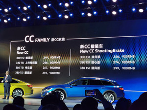 12月7日,新款一汽-大众CC家族正式上市,作为中期改款车型,大众CC轿车版外观与内饰变化都不算大,仅在细节方面略有改动,此次中期改款的最大亮点在于推出了全新的大众CC猎装版。此次上市共发布了7款车型,其中新CC推出有4款车型,官方指导价为24.99-29.29万元;新CC猎装车推出有3款车型,官方指导价为25.69-29.99万元,详细售价见下表: