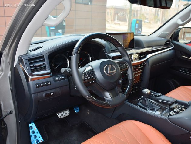 雷克萨斯LX全系配备皮质座椅、前排座椅电动调节、电动座椅记忆、后排座椅按比例放倒,行李箱容积为259-1276升等功能。