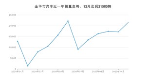 2020年12月,金华市汽车总销量为21585辆,环比增长25.87%。