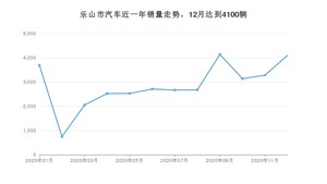 2020年12月,乐山市汽车总销量为4100辆,环比增长24.96%。