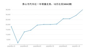 2020年12月,佛山市汽车总销量为34943辆,环比增长19.08%。
