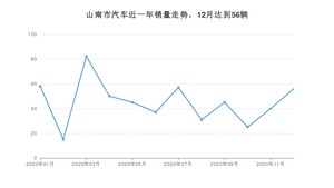 2020年12月,山南市汽车总销量为56辆,环比增长40.00%。