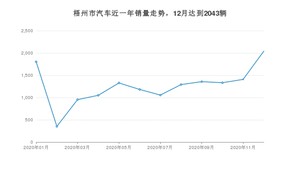 2020年12月,梧州市汽车总销量为2043辆,环比增长45.10%。