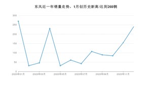 在国内市场上,东风在2020年12月的销量为240辆,环比增长55.84%。