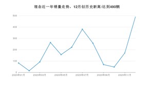 在国内市场上,理念在2020年12月的销量为490辆,环比增长186.55%。