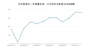 在国内市场上,北汽制造在2020年12月的销量为364辆,环比下降1.36%。