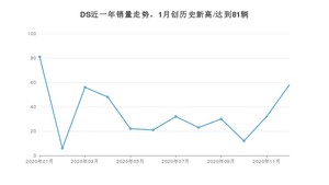在国内市场上,DS在2020年12月的销量为58辆,环比增长81.25%。
