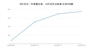 在国内市场上,R汽车在2020年12月的销量为753辆,环比增长8.03%。