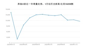 2020年12月,奔驰C级销量为11539辆,环比下降6.78%。