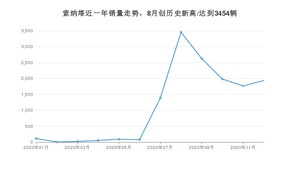 2020年12月,索纳塔销量为1936辆,环比增长9.69%。