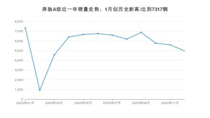 2020年12月,奔驰A级销量为4958辆,环比下降11.37%。