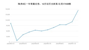 2020年12月,瑞虎8销量为17458辆,环比增长57.73%。