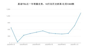 2020年12月,星途TXL销量为1342辆,环比增长75.20%。