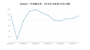 2020年12月,Giulia销量为96辆,环比增长11.63%。