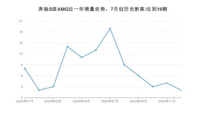 2020年12月,奔驰S级AMG销量为2辆,环比下降50.00%。