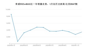 2020年12月,荣威RX5 MAX销量为3428辆,环比增长27.20%。