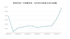 2020年12月,捷途X70销量为11628辆,环比增长76.53%。