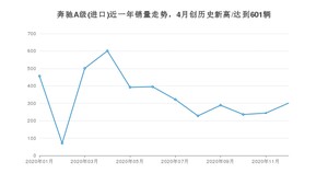 2020年12月,奔驰A级(进口)销量为301辆,环比增长23.36%。
