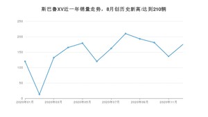 2020年12月,斯巴鲁XV销量为175辆,环比增长28.68%。