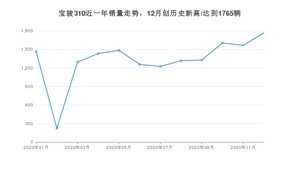 2020年12月,宝骏310销量为1765辆,环比增长12.92%。