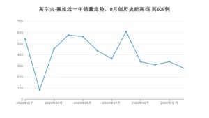 2020年12月,高尔夫·嘉旅销量为279辆,环比下降17.46%。