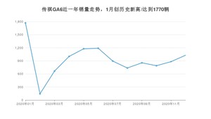 2020年12月,传祺GA6销量为1029辆,环比增长16.80%。