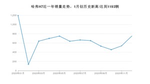 2020年12月,哈弗H7销量为752辆,环比增长40.04%。