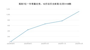 2020年12月,观致7销量为1118辆,环比增长45.19%。
