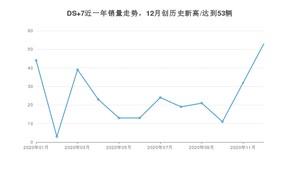 2020年12月,DS 7销量为53辆,环比增长65.63%。
