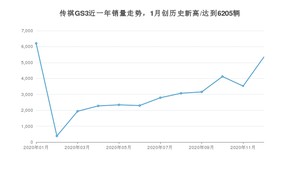 2020年12月,传祺GS3销量为5345辆,环比增长51.76%。