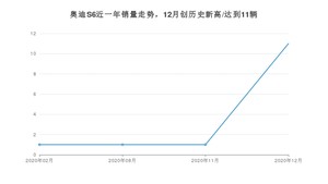 2020年12月,奥迪S6销量为11辆,环比增长1,000.00%。