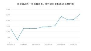 2020年12月,比亚迪e2销量为2581辆,环比增长23.79%。