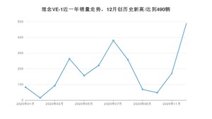 2020年12月,理念VE-1销量为490辆,环比增长186.55%。