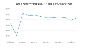 2020年12月,五菱宏光V销量为8760辆,环比增长11.99%。