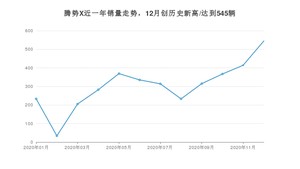 2020年12月,腾势X销量为545辆,环比增长31.64%。