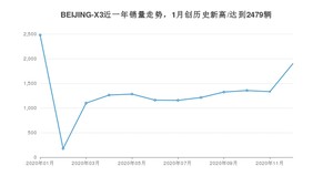2020年12月,BEIJING-X3销量为1898辆,环比增长42.60%。