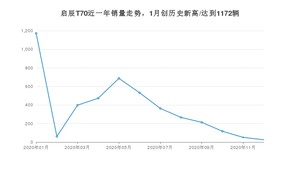 2020年12月,启辰T70销量为25辆,环比下降50.98%。