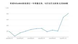 2020年12月,荣威RX5 MAX新能源销量为820辆,环比增长21.30%。