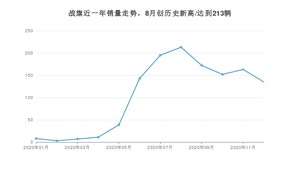 2020年12月,战旗销量为135辆,环比下降17.18%。