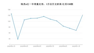 2020年12月,瑞虎e销量为153辆,环比增长109.59%。