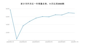 2020年11月,新乡市汽车总销量为6860辆,同比增长12.16%,环比下降1.71%。