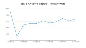 2020年11月,德阳市汽车总销量为3390辆,同比增长18.86%,环比增长10.46%。