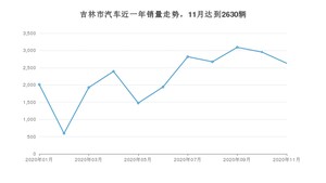 2020年11月,吉林市汽车总销量为2630辆,同比下降7.39%,环比下降11%。