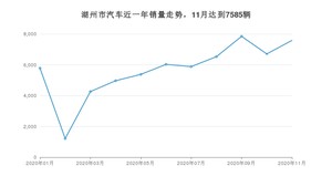 2020年11月,湖州市汽车总销量为7585辆,同比增长11.25%,环比增长13.11%。