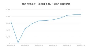 2020年11月,潍坊市汽车总销量为12787辆,同比增长22.49%,环比增长0.53%。