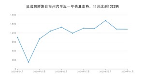 2020年11月,延边朝鲜族自治州汽车总销量为1323辆,同比下降32.36%,环比下降0.3%。